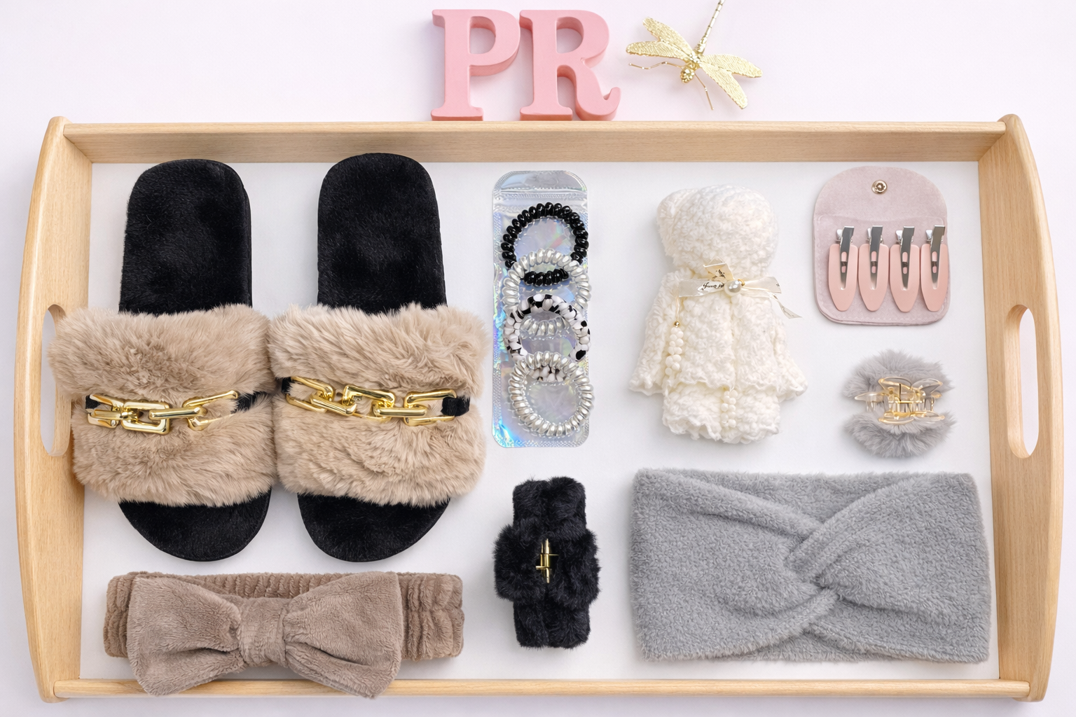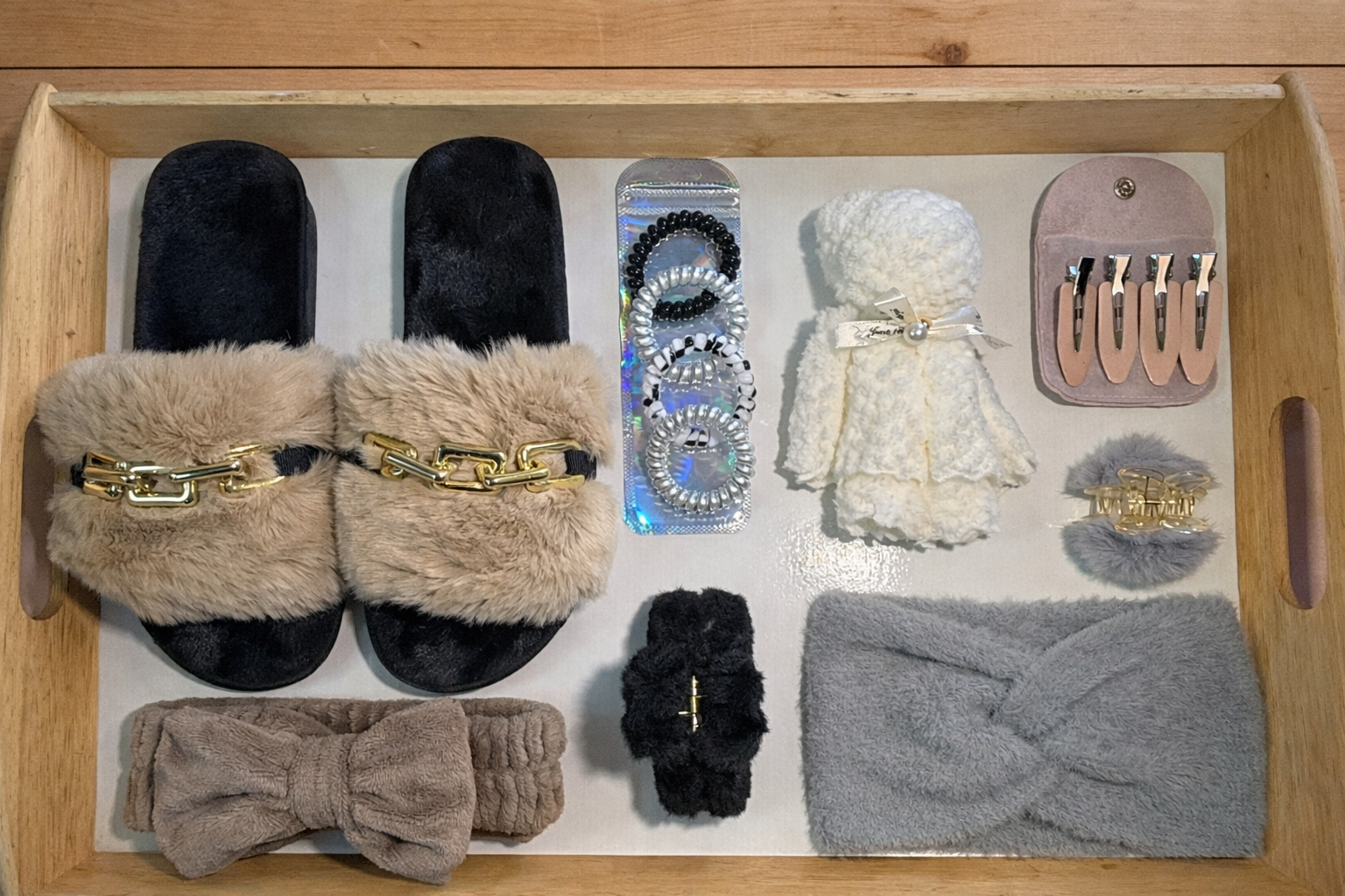 Pantuflas base negra, peluche marrón y cadena dorada Talla 38-39